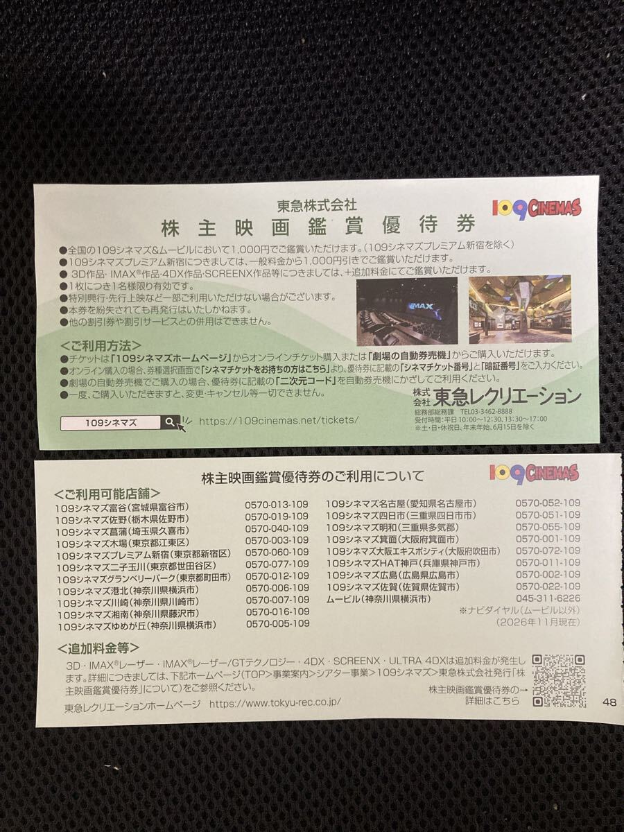 109シネマズ 株主映画鑑賞券 複数あり 割引券 109CINEMAS 東急 株主優待