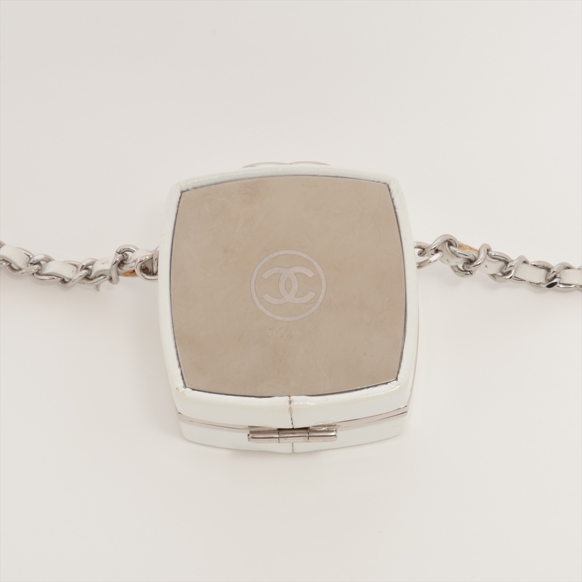 シャネル CHANEL ショルダーバッグ 31番台 2021-2022 ミラー 小物入れ チェーン ネックレス ホワイト×シルバー
