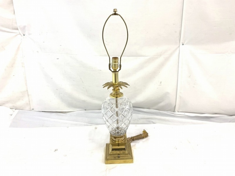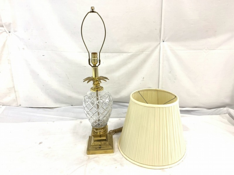 【アメリカ製】Trinity Lighting ガラス製パイナップルフォルムテーブルランプ シェード付スタンドライト 米軍放出品 (160) HL11BK-2-W#25
