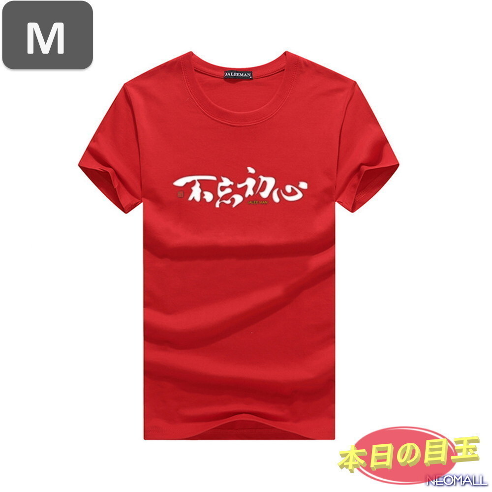 本日のお買得 ☆ 丸首 半袖 Tシャツ【463】 レッド Mサイズ トップス シャツ シンプル イラスト デザイン 春夏