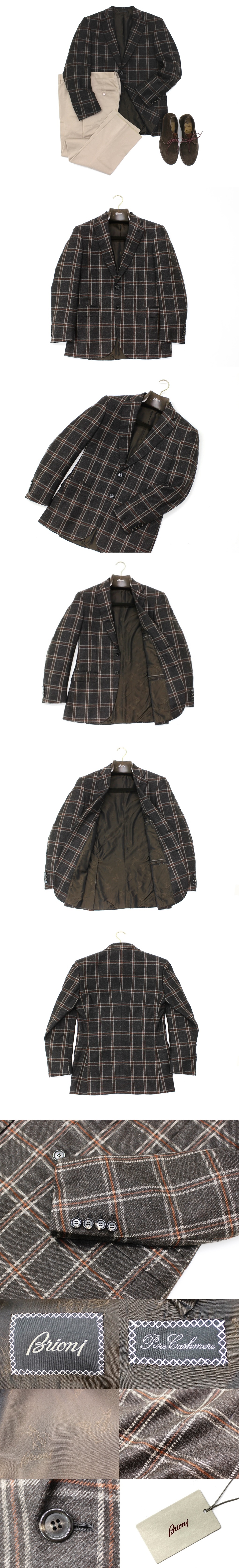 143万新品◆54=XL◆Brioniブリオーニ イタリア製 カシミヤ100% タータンチェック柄テーラードジャケット 濃茶ブラウン