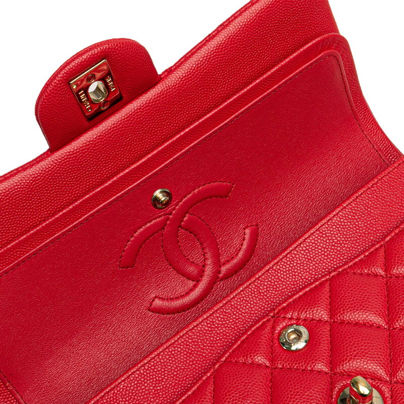 シャネル マトラッセ23 ココマーク Wフラップ チェーン ショルダーバッグ レッド ゴールド金具 キャビアスキン CHANEL 【中古】