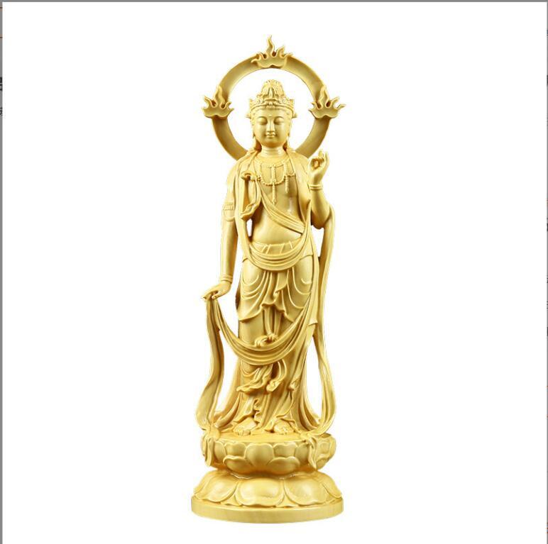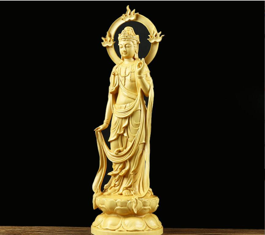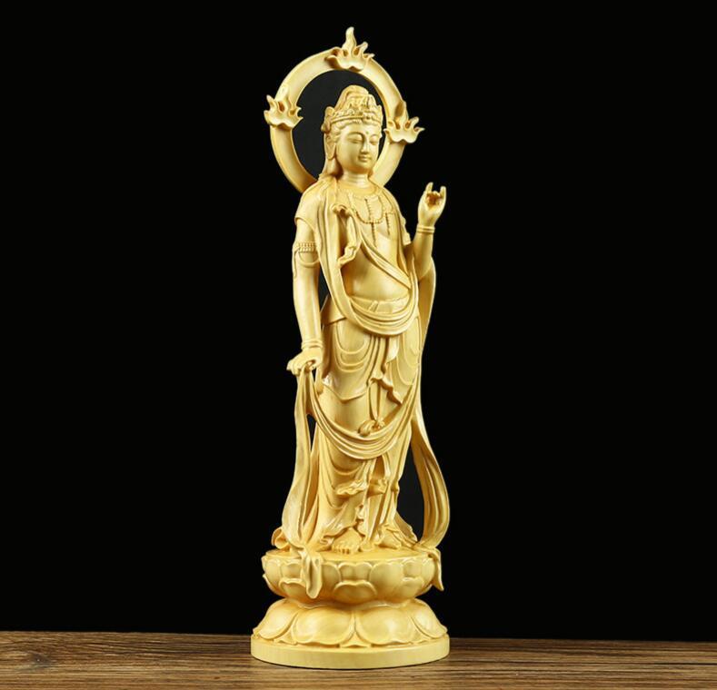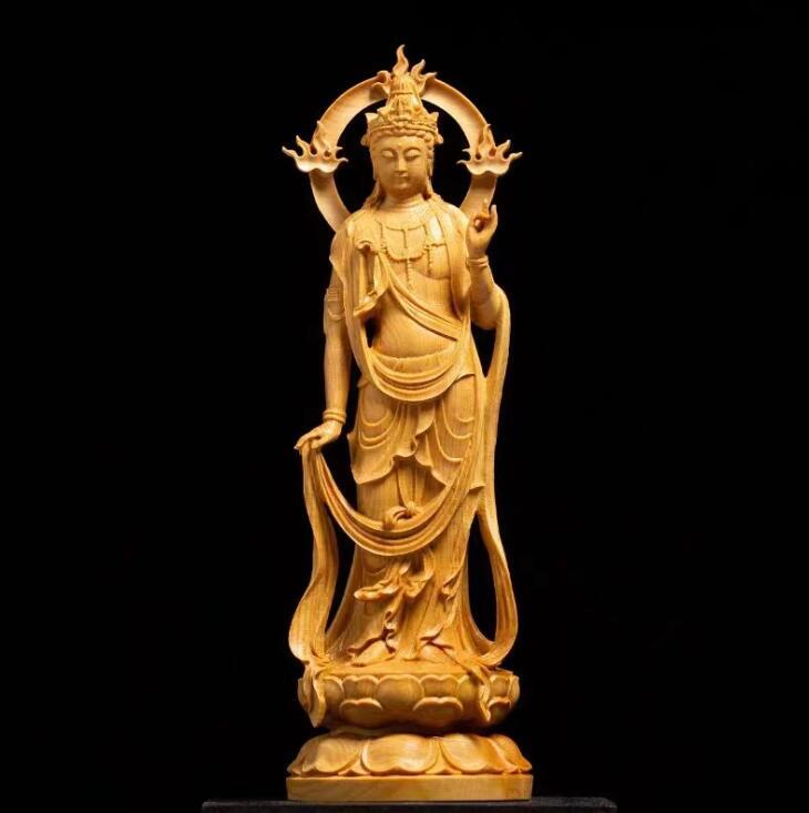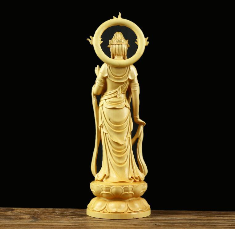 上質高級精像 黄楊木彫り 観音実木 風水幸運 仏堂供養 工芸品 仏像置物 大勢至菩薩