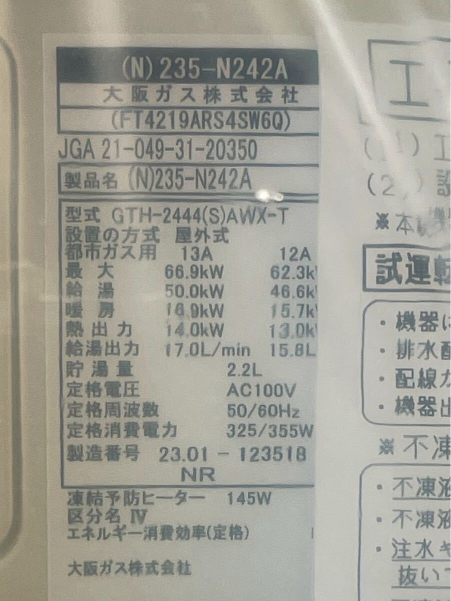 | 商品詳細 | ◯G9271 未使用 NORITZ ノーリツ ガス給湯器 都市ガス用 GTH-2444(S)AWX-T◯ |