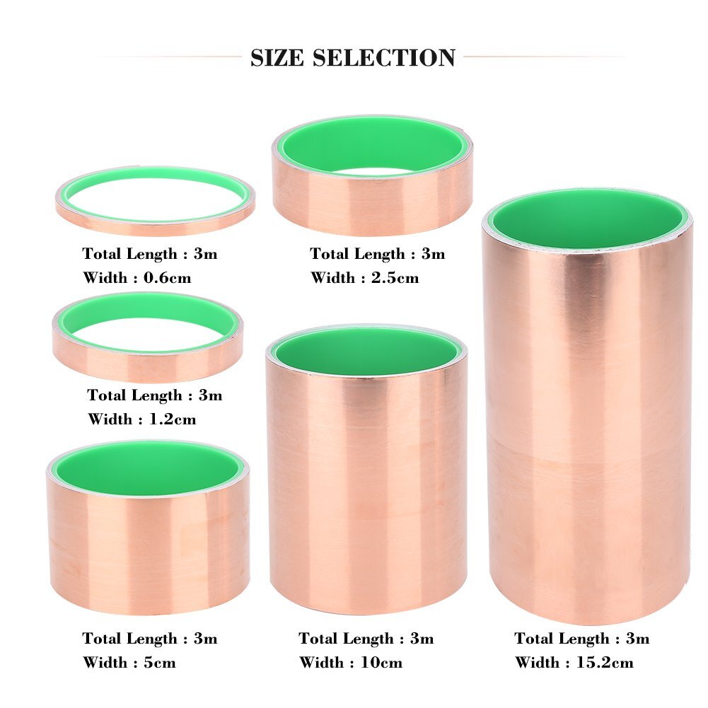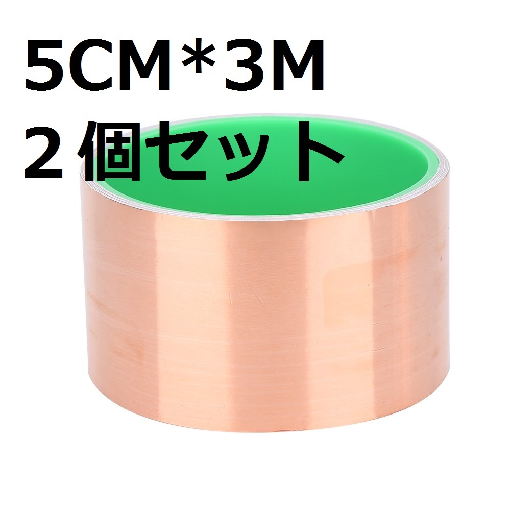 #20T【2個セット☆5CM*3M】銅箔テープ 両面導電 粘着 EMIシールド用 強接着 防水 耐寒耐熱耐UV ノイズ ガード 対策 電子部品対応