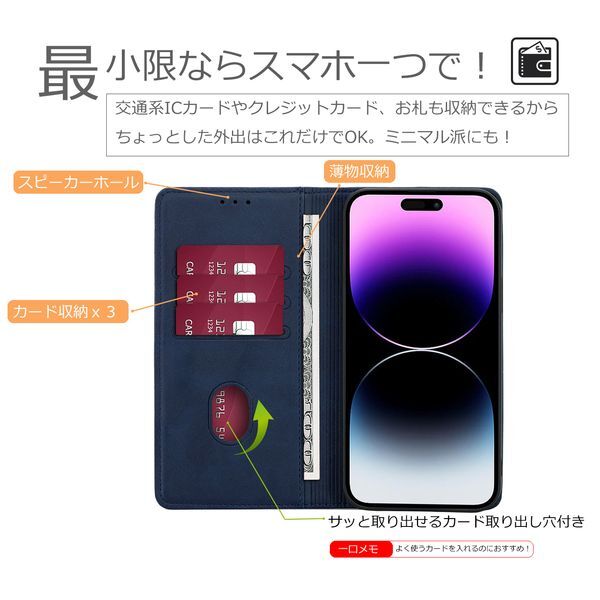 | 商品名 | iPhone XR 用 スマホケース 新品 手帳型 レザー 耐衝撃 アイフォン カード収納 携帯ケース ネイビー |
