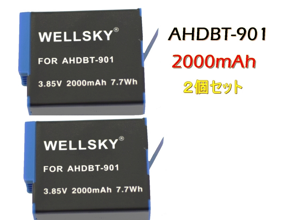 新品 GoPro ゴープロ AHDBT-901 2000mAh 互換バッテリー 2個