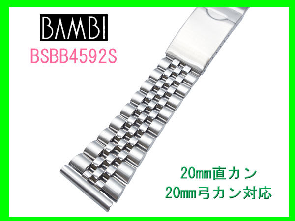 8mm 20mmのフィット管付 20mmの弓カン付 バンビ BAMBI ステンレス 時計 バンド ベルト BSBE4592S 新品未使用 正規品