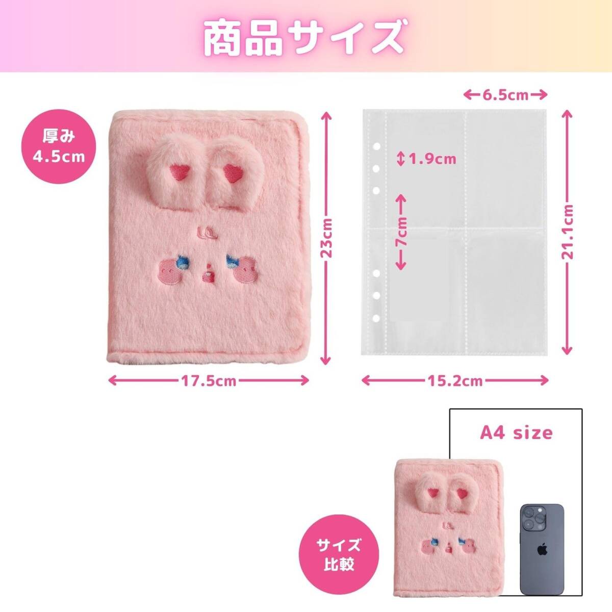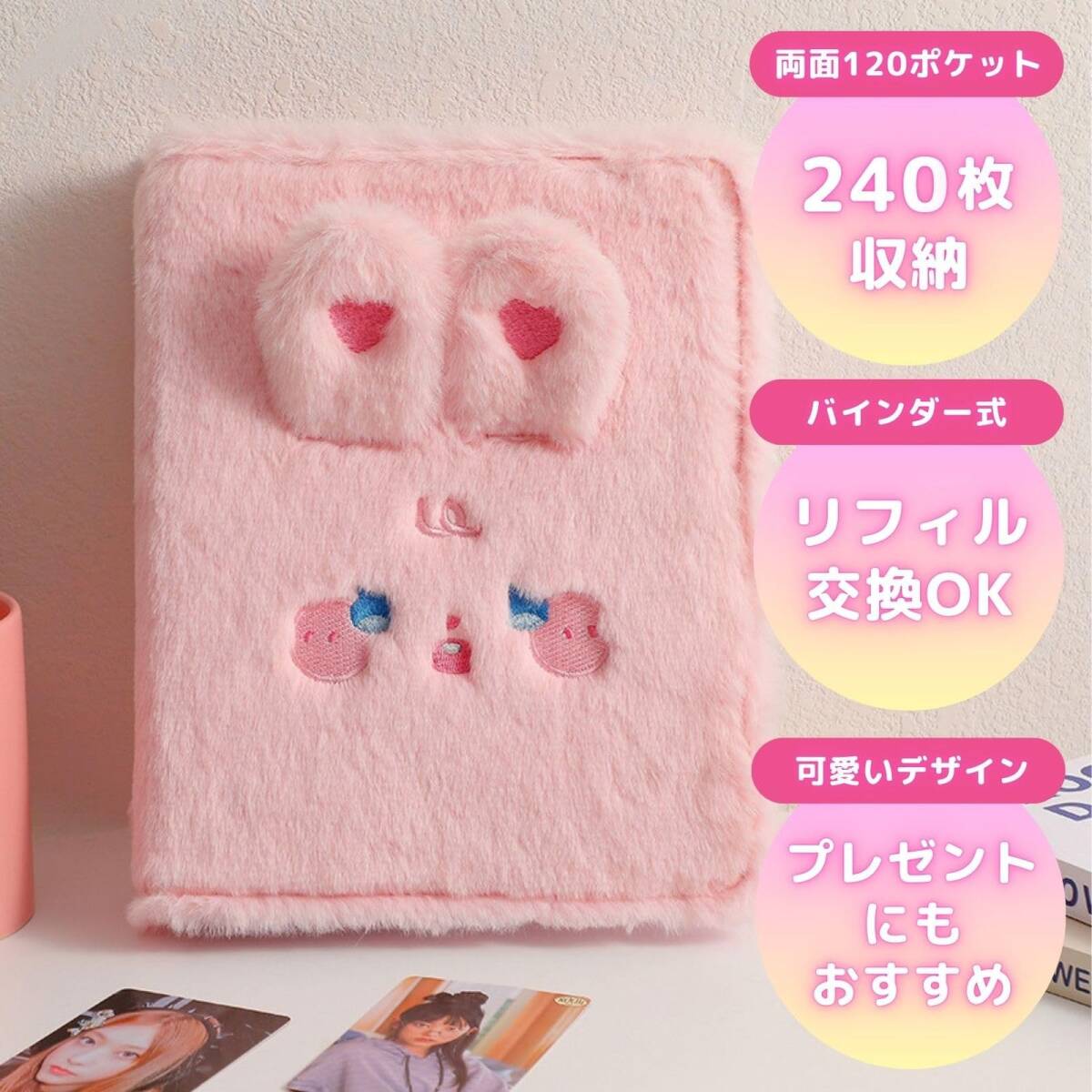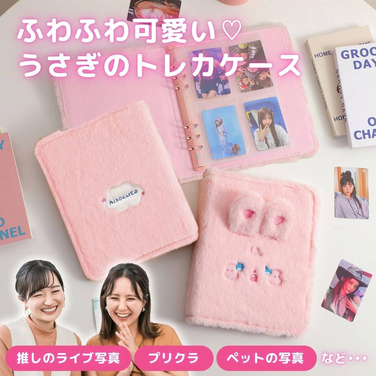 ふわふわのプラッシュ素材に、立体的なうさ耳&刺繍フェイスがとってもキュートなトレカ収納ファイル。推し活女子や韓国雑貨好きにぴったり!デスクや棚に置くだけで癒しのインテリアに早変わり収納力抜群!