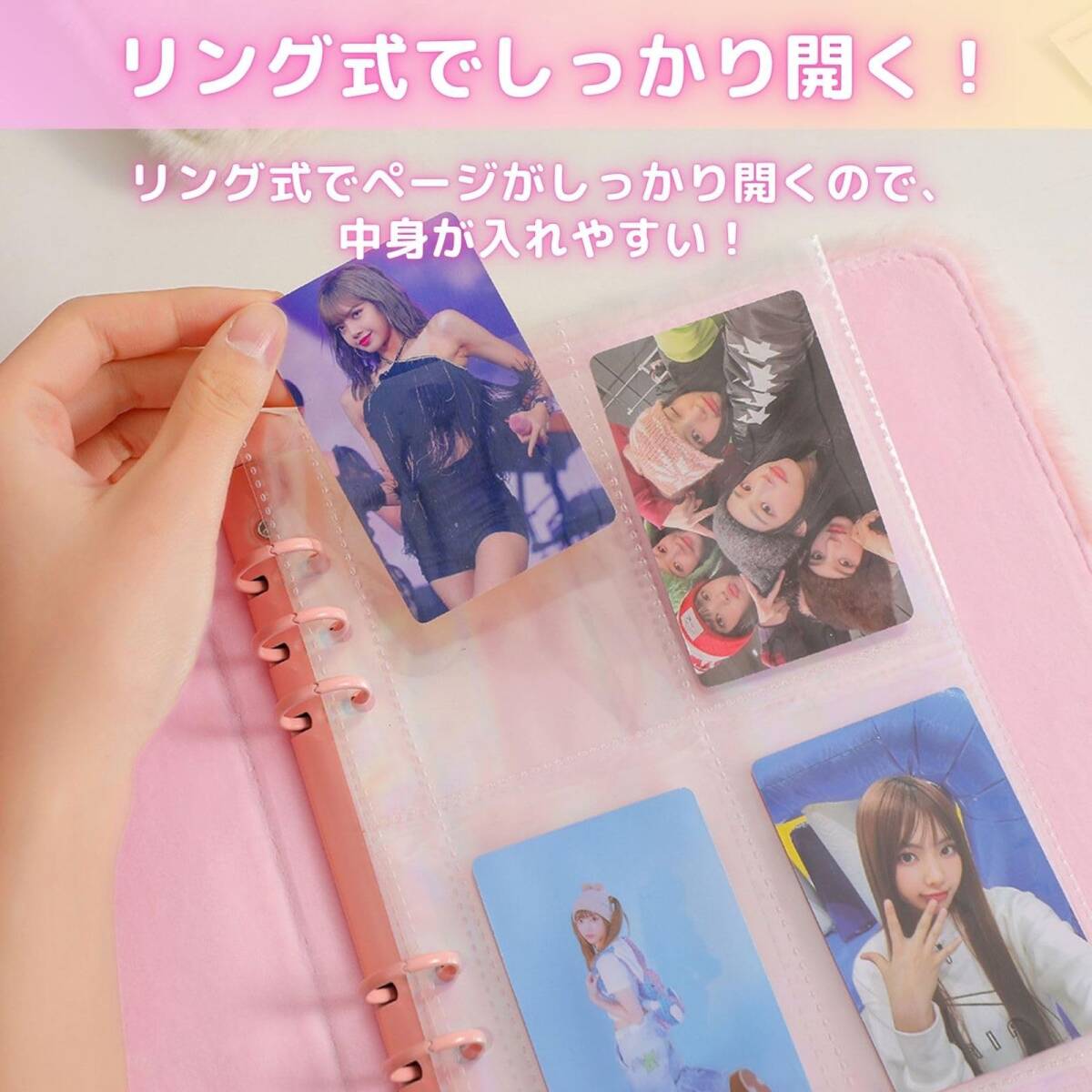チェキ、トレーディングカード、ゲームカード、銀行カード、会員証、名刺などに対応。 バインダー式で差し替え自由!