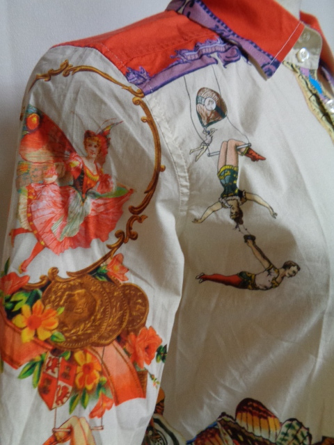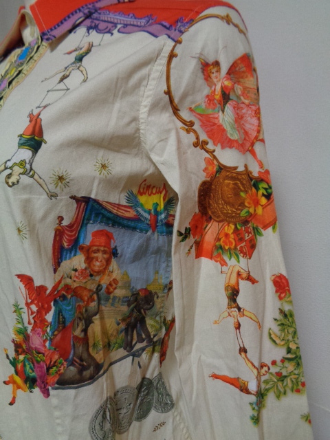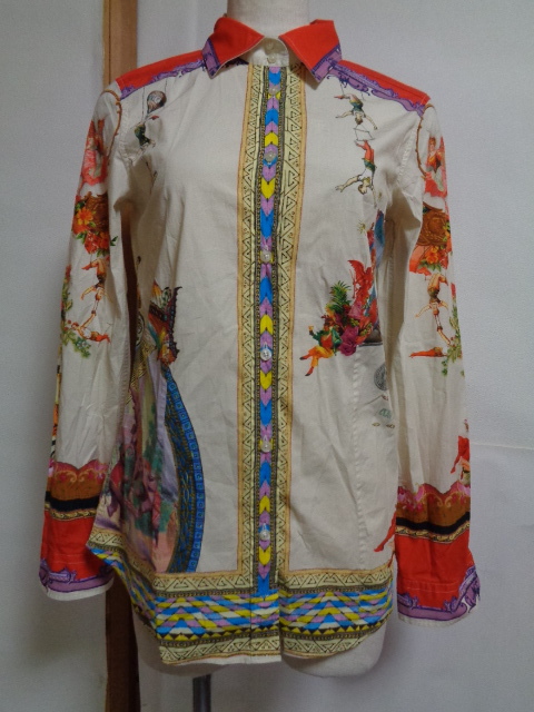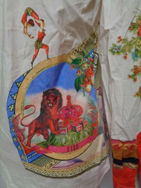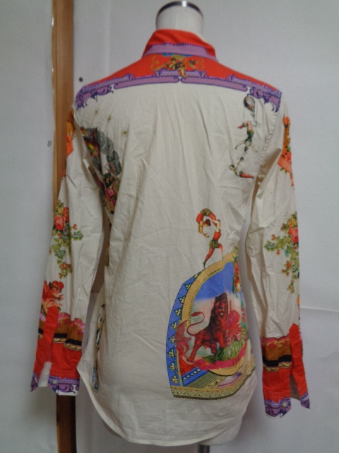 美品★エトロ*40*柄シャツ*綿シャツ*長袖ブラウス*サーカス柄*動物柄*ロゴ入り*エトロジャパン製*オールシーズン*ETRO**春夏秋冬*