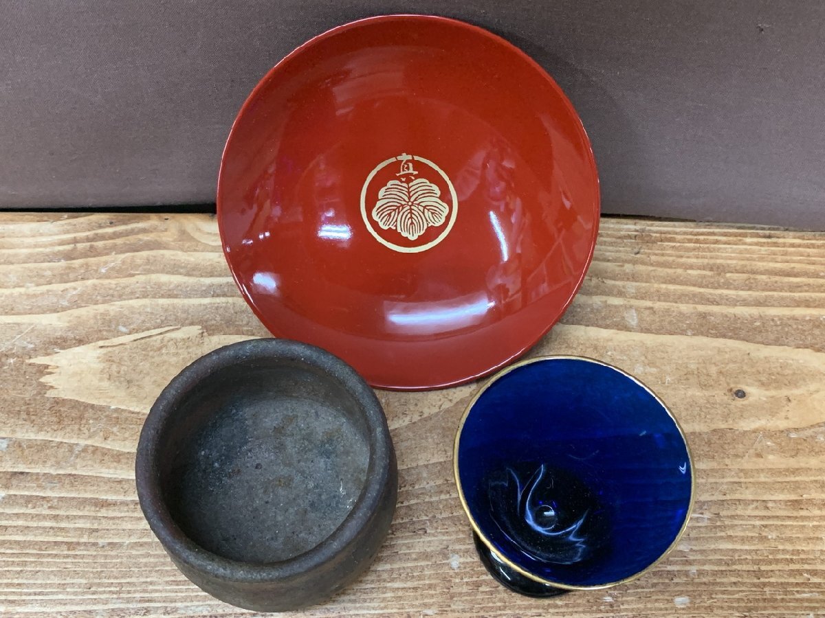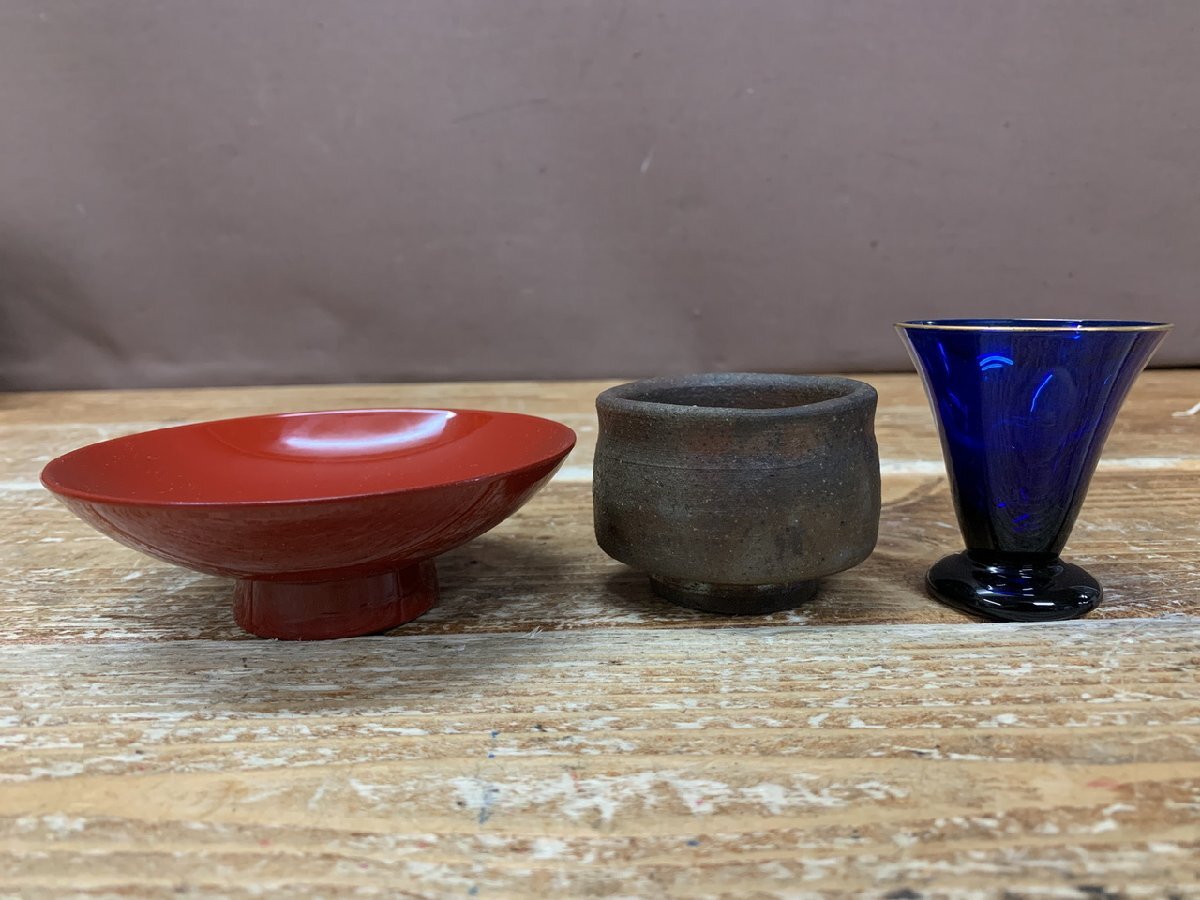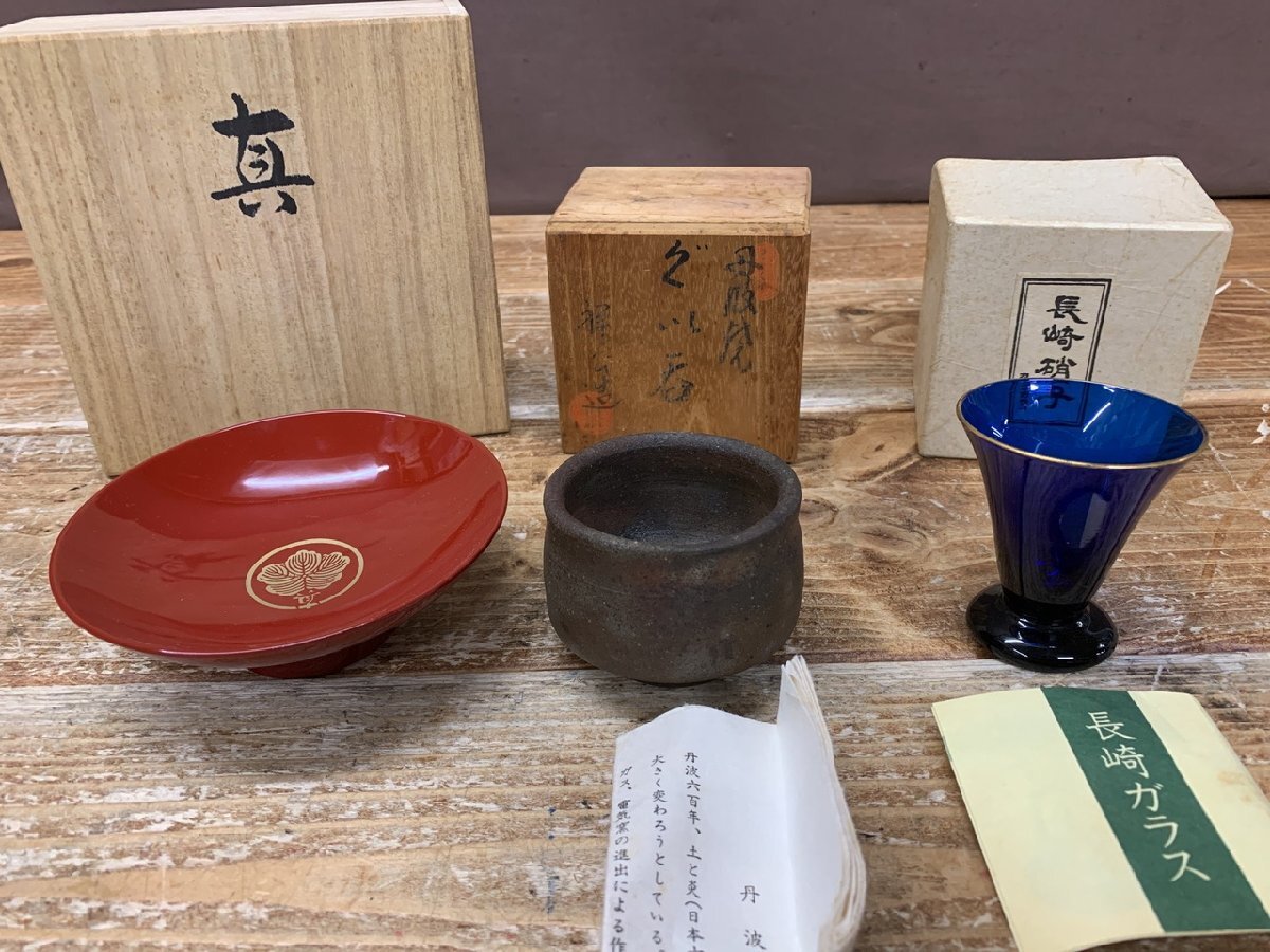 【O-8123】丹波焼 ぐい呑み 盃 祥公窯 / 真多呂 眞多呂 盃 / 長崎硝子 杯 酒器3点まとめ セット 同梱可 東京引取可 現状品【千円市場】