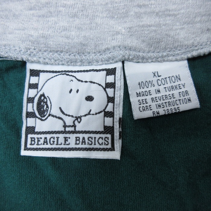 【商品名】 XL★古着 半袖 ビンテージ Tシャツ メンズ 00年代 00s スヌーピー ツートンカラー 大きいサイズ コットン ヘンリーネック 緑他 霜降り【spe】