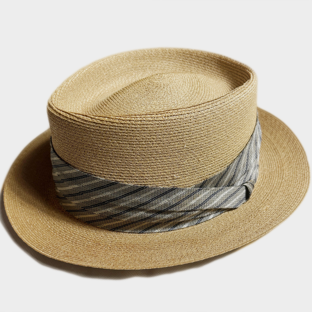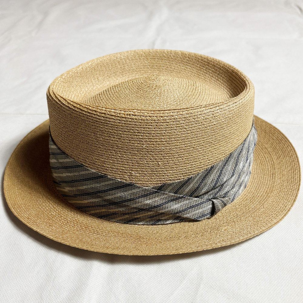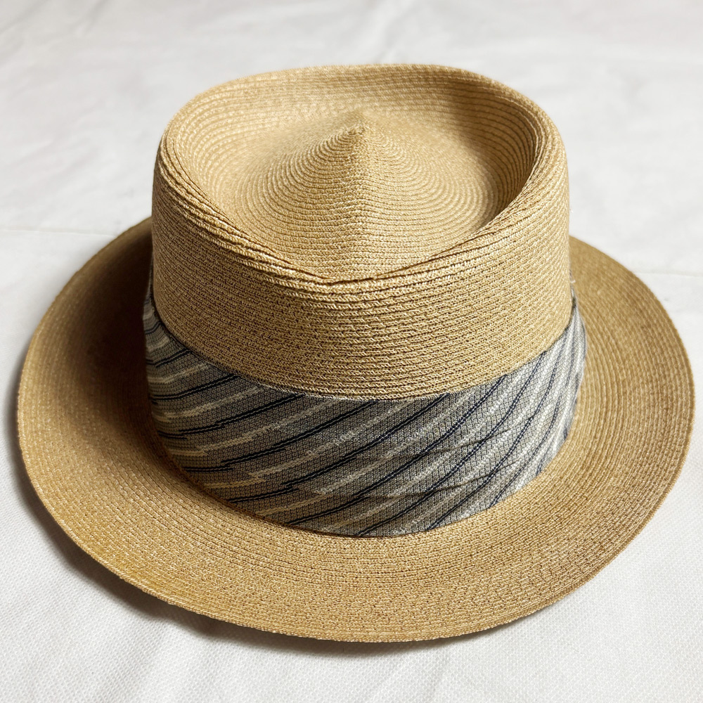 珍しいリボンデザインの、ミラン素材ハットのビッグサイズ ! PENNY's MARATHON(ペニーズマラソン)の、推定50年代頃のレジメンタルストライプリボンミランハットが入荷。しかも滅多に出てこないビッグサイズ!