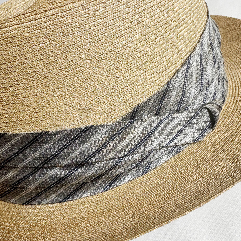 BIG! 50's ペニーズマラソン 59.5CM レジメンタル リボン ミラン ハット PENYY'S MARATHON MILAN HAT パナマ ストロー カンカン帽 BOATER