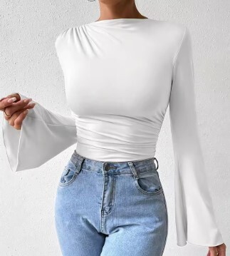 女性用長袖ラウンドネックジャンプスーツ,カジュアルジャンプスーツ,単色ボディスーツ,韓国スタイル 色: ホワイト サイズ:S