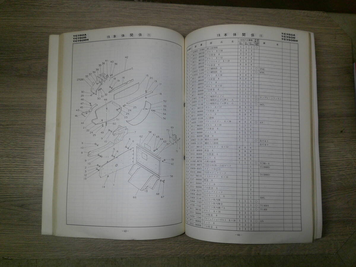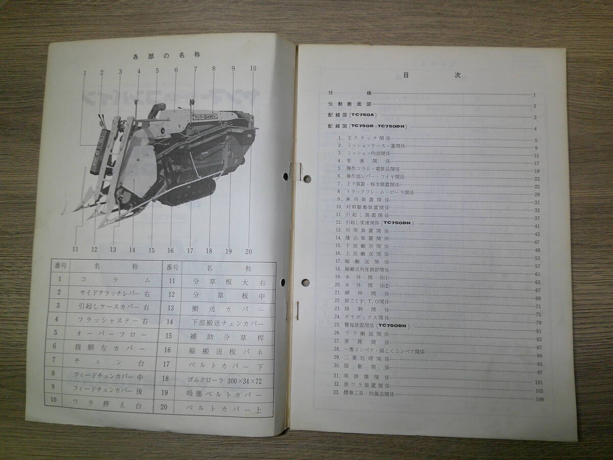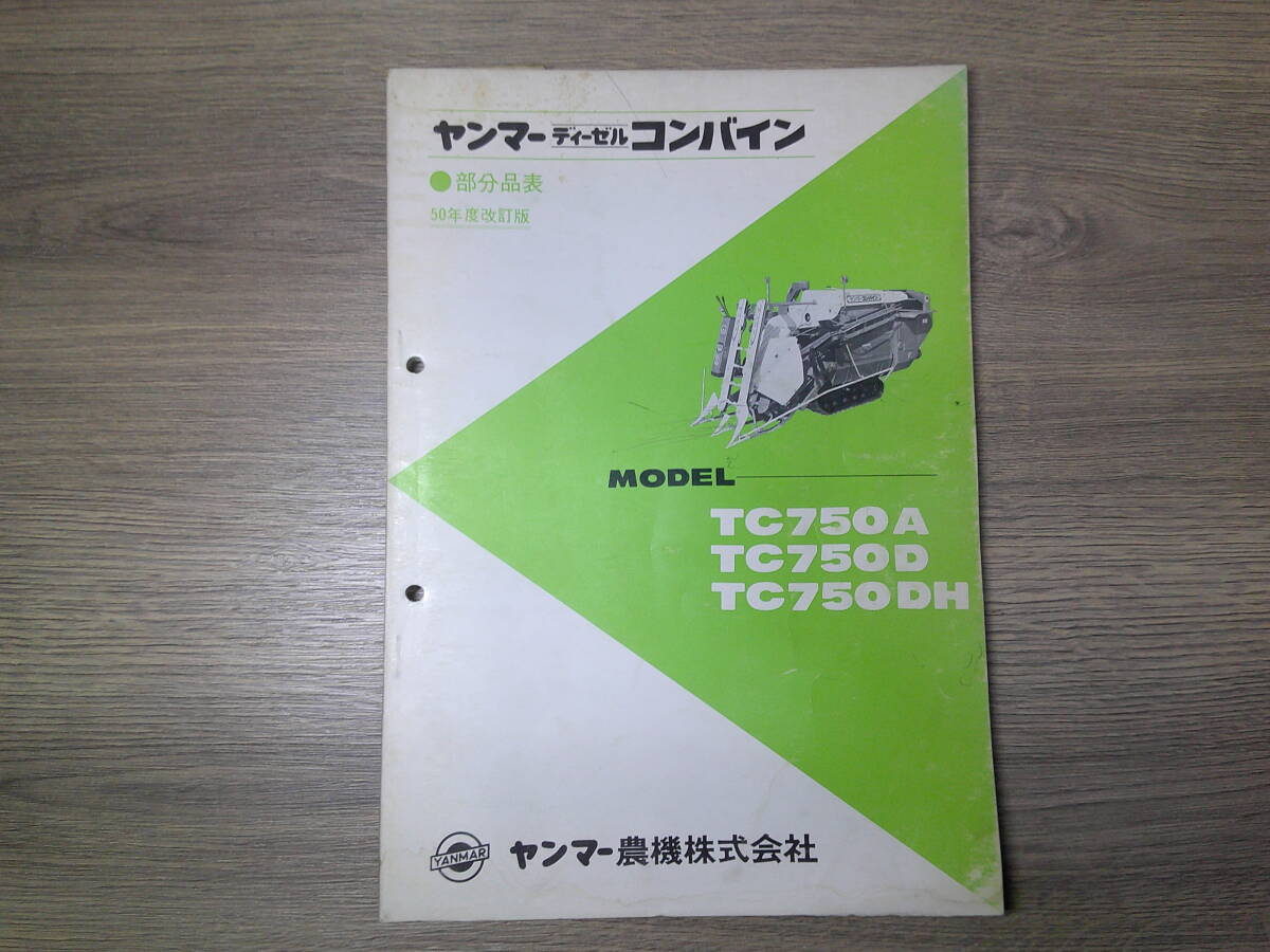 ヤンマー ディーゼルコンバイン TC750A TC750D TC750DH 部分品表の出品です。