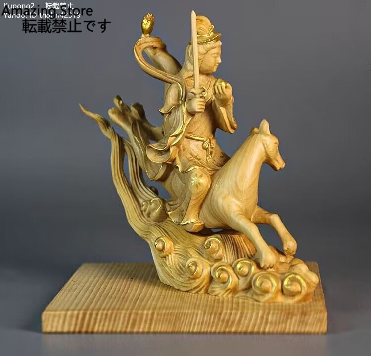 仏像 荼吉尼天 騎狐像 “お守り” 稲荷神様 ダキニ天,置物,縁起物,木彫 木製
