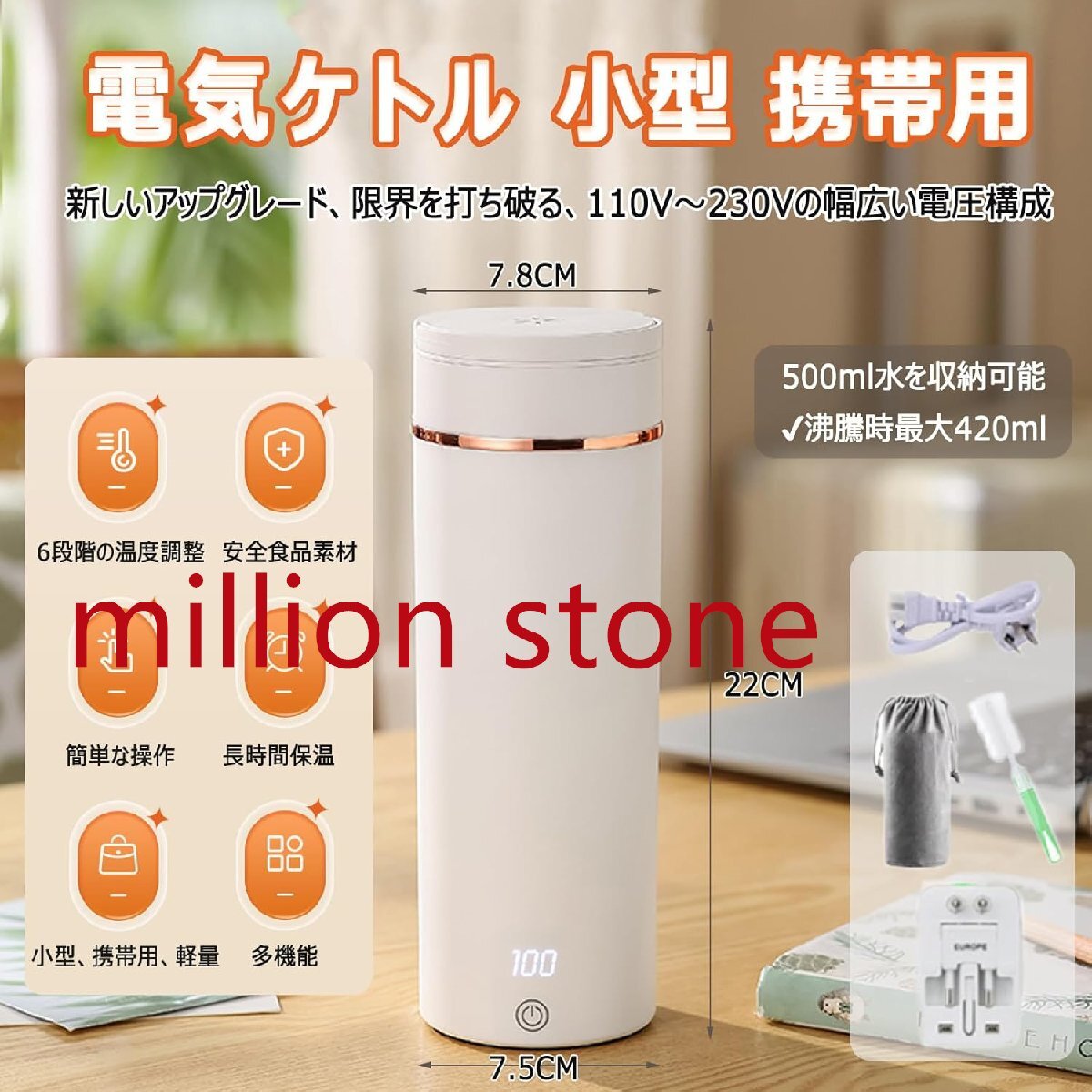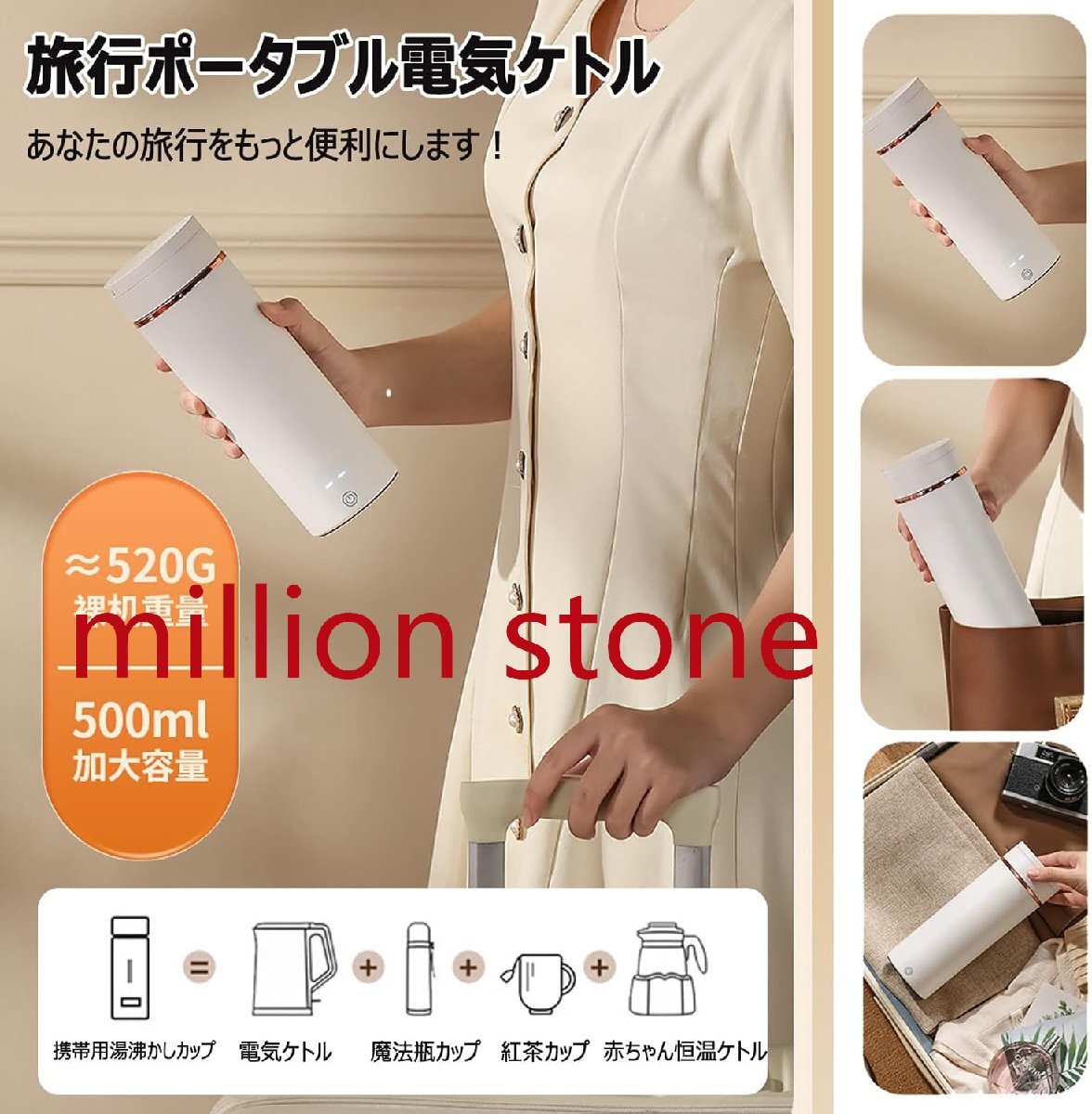 電気ケトル 小型 携帯用 500ML ポータブル 湯沸かしポット 湯沸かし器 トラベルケトル 300W 急速沸騰 自動OFF 空焚き防止 真空断熱 漏れな