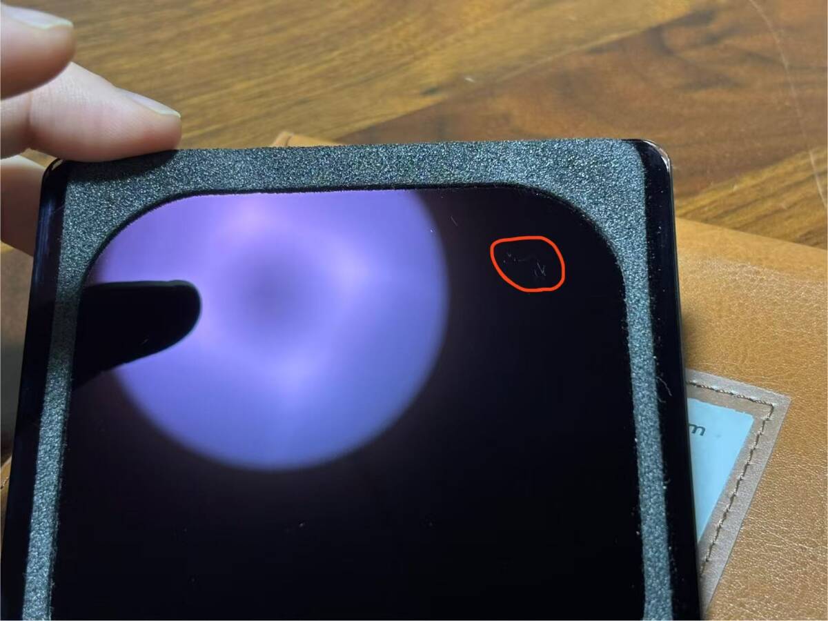 かなりきれいですが、2枚目に唯一目視で確認できた傷になりますが、結像にほぼ影響はないです。