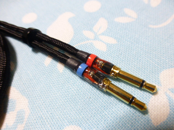 そのためヘッドホン側は3.5mmモノラルプラグ×2構成です。