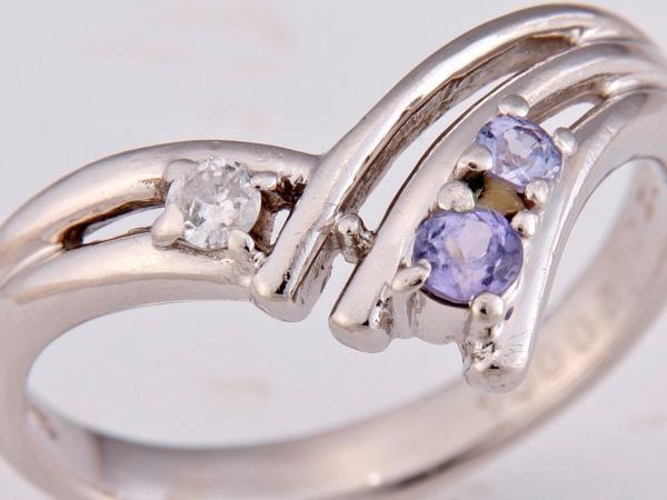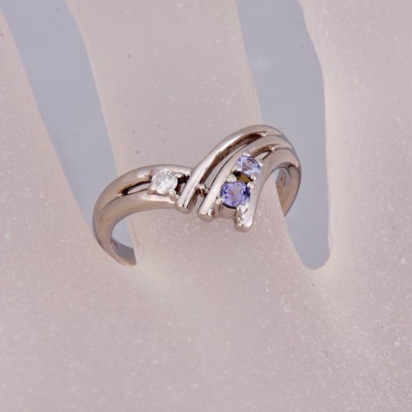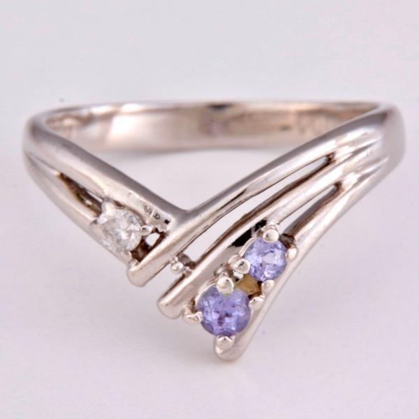V字ラインのリングに天然タンザナイト(ゾイサイト)と天然ダイヤモンドをあしらったデザインです。