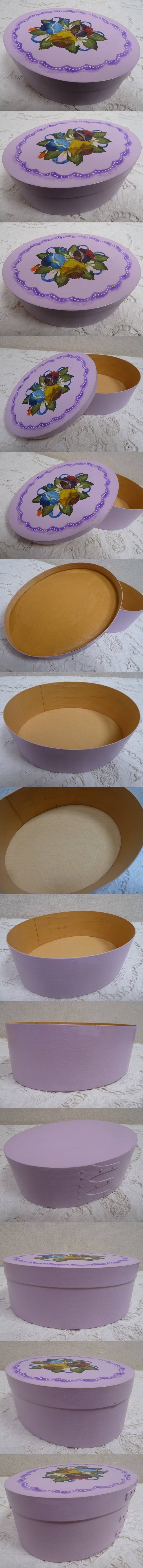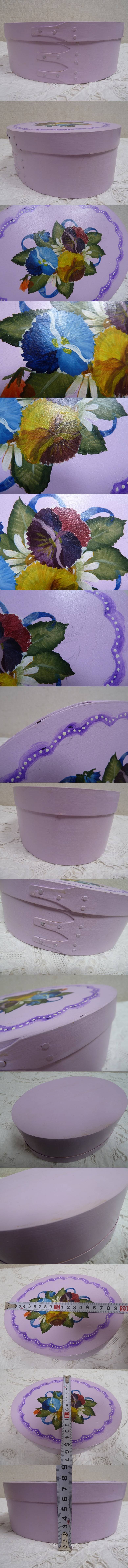(☆BM)トールペイント(0404-③)パープル オーバル 小物入れ 横幅20.2㎝ 木製 手描き ハンドペイント 紫 花柄 ヴィクトリアンレトロ