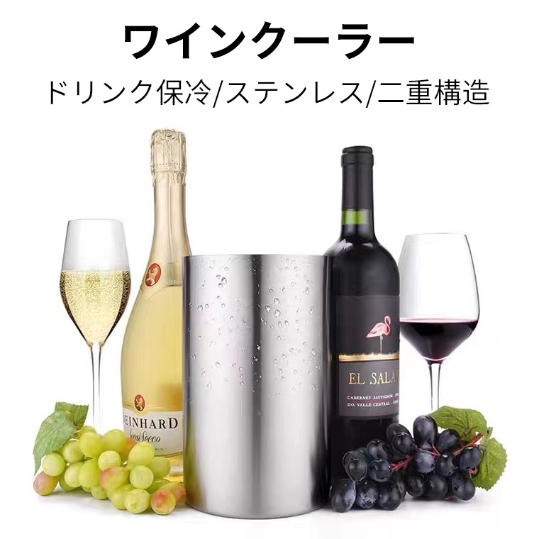 ☆ワインクーラー 冷ビール ドリンク保冷 瓶ビール保冷 アウトドア ステンレス製 二重構造 水滴が付きにくい 卓上 ボトル シャンパン