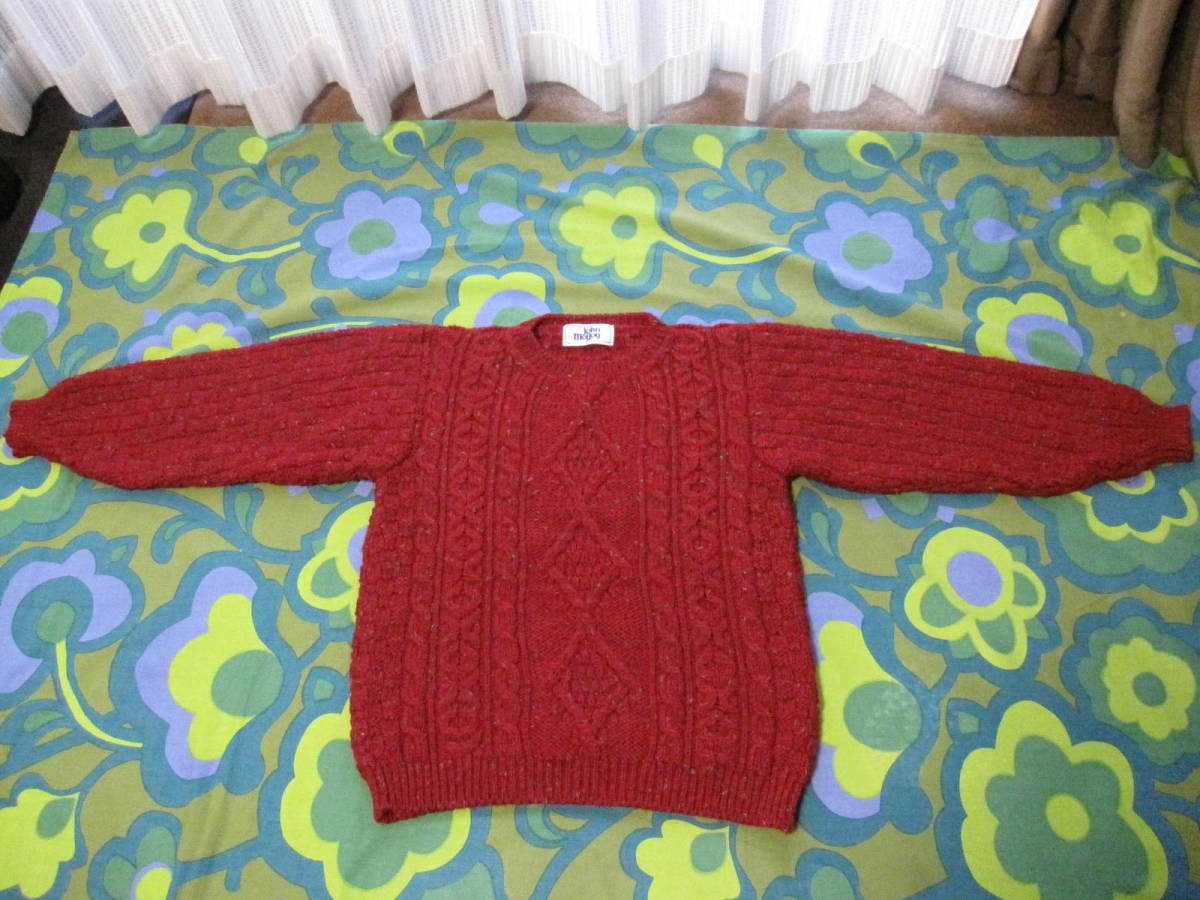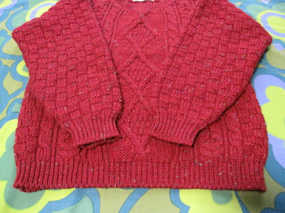 JOHN MOLLOY ジョンモロイ アイルランド製 セーター ニット ウール100 レッド/カラーネップ メンズS-M程度 レディースXL程度 USEDキレイ