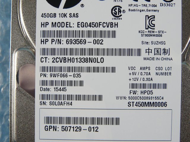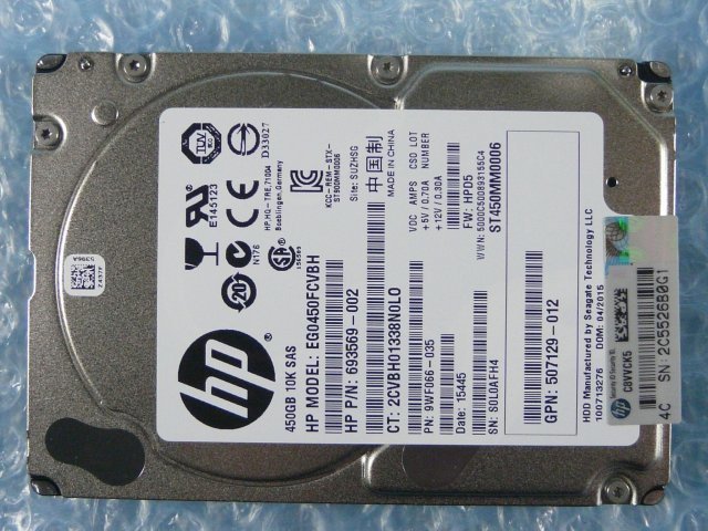 HP EG0450FCVBH 450GB 2.5インチ SAS 6G 10K(10000)rpm ST450MM0006 15mm ![]() | |||||||||||||