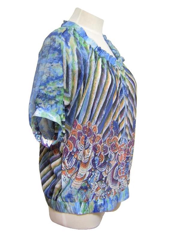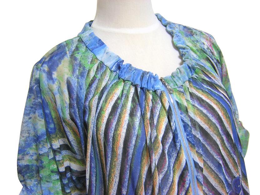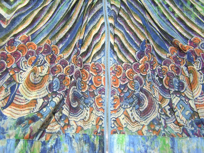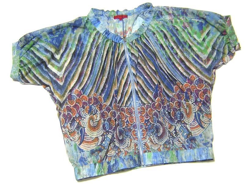 VIVIENNE TAM の香港製、 プリントネットジップブラウスでございます。 伸縮性あり/透け感あり | |