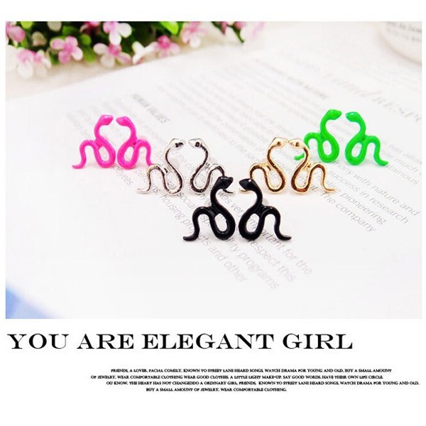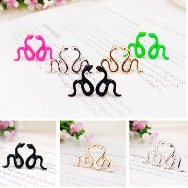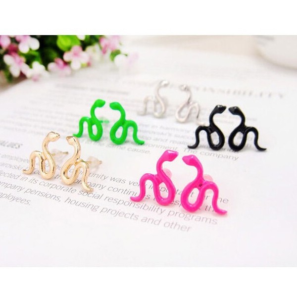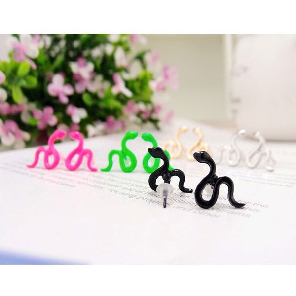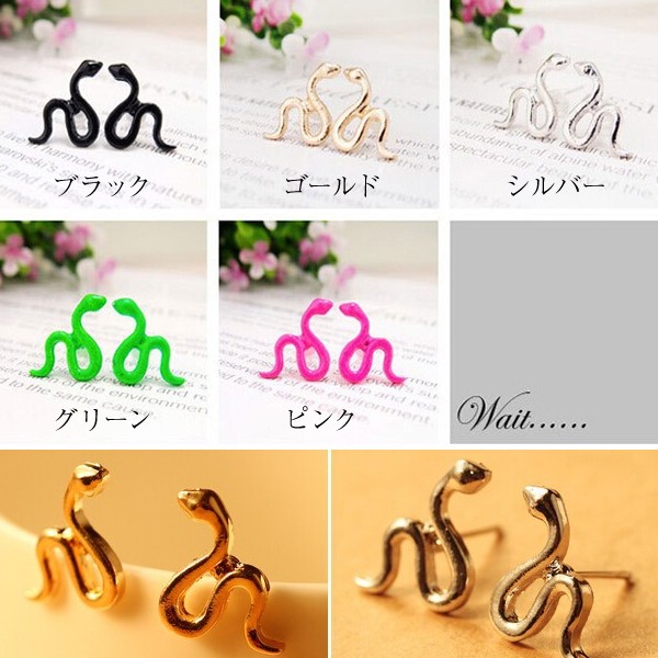デフォルメされたかわいい蛇をデザインしたポップ調ピアス。