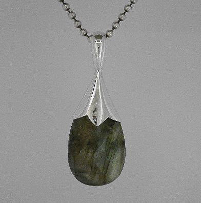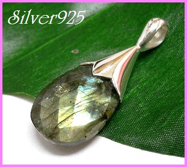 シルバー925銀の天然石ラブラドライト[多面カット]ドロップ ペンダント