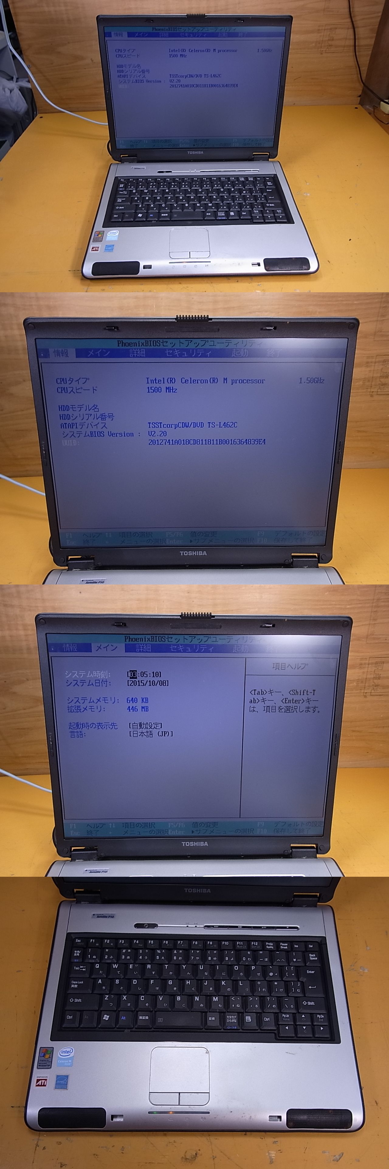 | □Ye/321☆東芝 TOSHIBA☆15型ノートパソコン dynabook Satellite P10☆PSP101NC5HA1L☆CeleronM 1.50GHz☆メモリ446MB☆HDDなし☆ジャンク | |