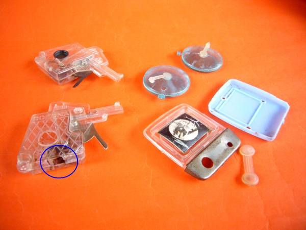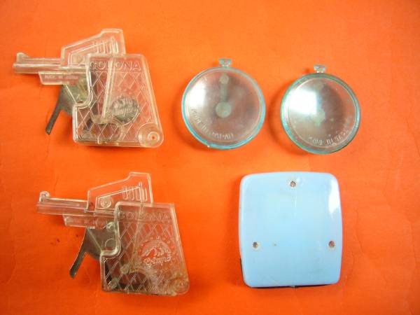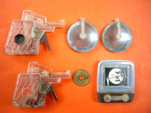 | 商品紹介 | お詳しい方にお願い致します。 写真のものセット売りとさせて頂きます。 本体プラスチック製 ざっと拭きましたがヨゴレがあります。 ビニール袋に簡単にひとまとめにしての 梱包発送になります。 ご了承下さい。 写真でご判断できるようでしたらお願いいたします。 (五円玉は比較対照の為のものです。) (写真では実際の色が出にくい場合がありますが、ご了解下さい。) それぞれのものに所々ヒビワレがあります。 テレビ型のものは見る角度によって絵が変わる ステレオカードが貼られています。 箒に乗った魔法使いのようですが 経年劣化で見ずらくなっています。 写真でご覧のように、蓋、本体の留め部が外れてバラバラの状態です。 ピストル型は仁丹状のものを撃てるようになっていますが 2点とも引き金は手で戻さないと戻らない状態です。 下段のピストルは蓋が欠品、底に欠損があります。(写真3枚目枠内参照) 時計型のものに接着補修があります。 写真でご覧のように 中古品ですので経年の色褪せ、ヨゴレ スレ、小キズ、メッキの剥落、金属部のサビ、黒ずみなどがあります。 他にも難があるかも知れません。 その場合はご容赦下さい。 見落とし、書き落としもあろうかと思いますので 状態、欠品などは画像にてご判断下さい。 写真のものが全てです。 写真でご判断下さる様お願い申し上げます。 落札時に出品者からのメッセージが届きますのでご覧下さい。 (マイオークションの通知設定を非通知にしている場合は届きません) メールが届かない場合はお手数ですがご連絡下さい。 落札後のキャンセルはお受けできません。 |
