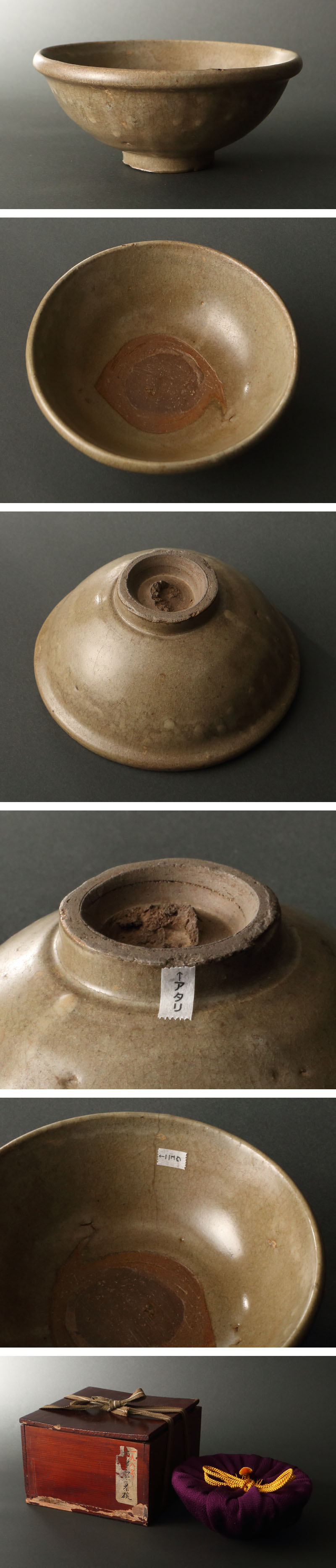 ・経年感、ニュウ、カマキズ多数、高台に複数アタリ、箱のフタに反りがあります。