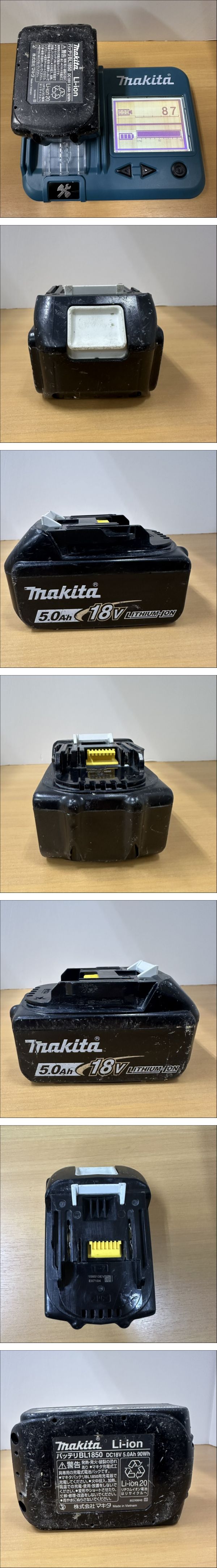 | 【中古】makita マキタ 純正 バッテリ BL1850 DC18V 5.0Ah 90Wh 充電回数87回 | ||