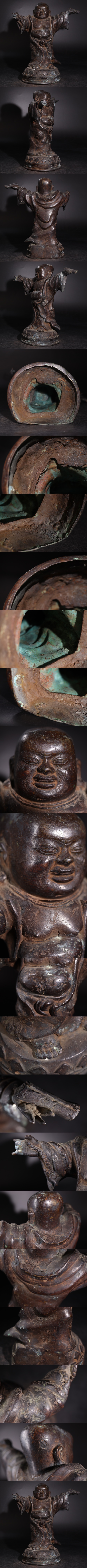 | 時代 古銅 布袋像 / 仏教美術 仏像 中国美術 銅 金工 彫金 置物 煎茶飾 .G3897 |