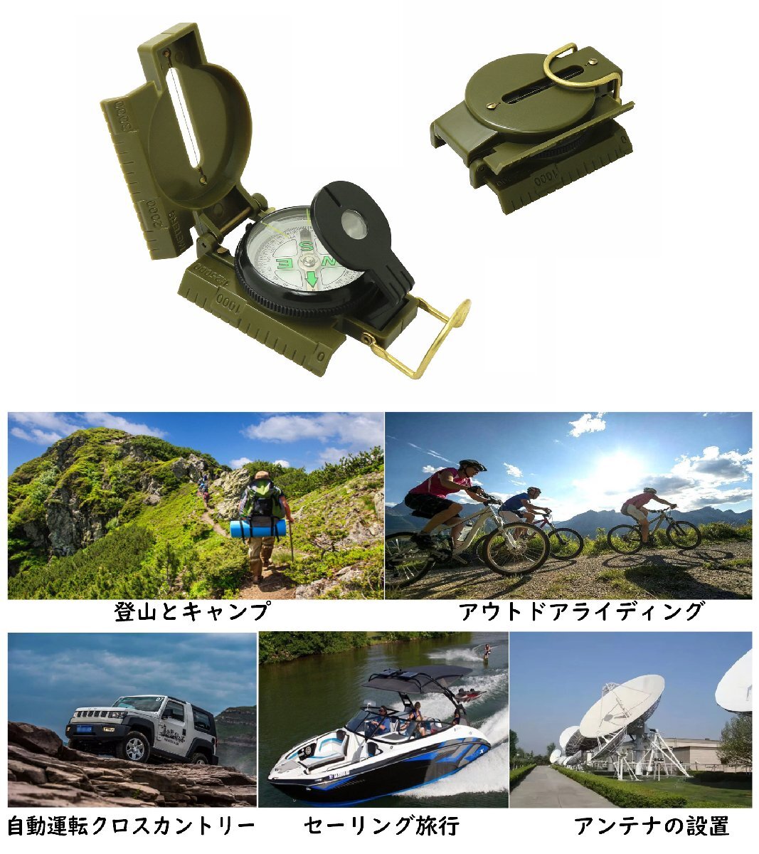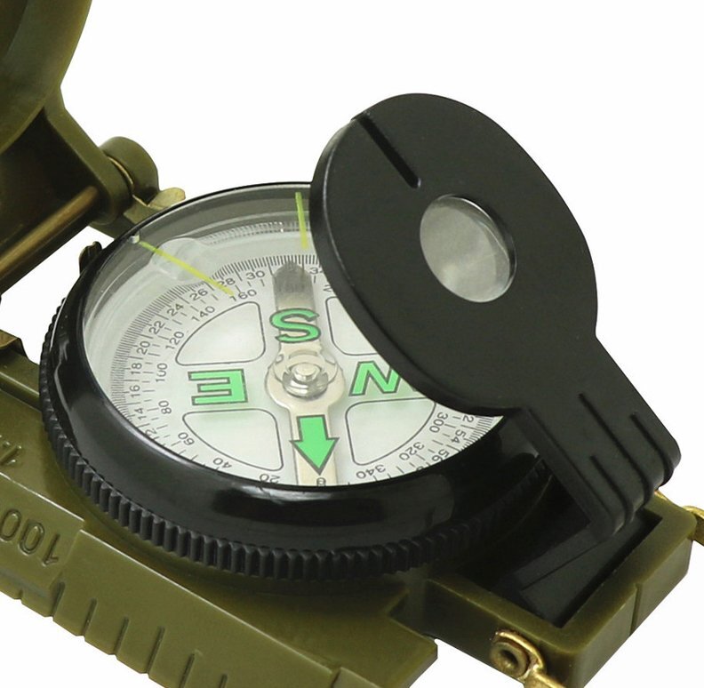 細かい目盛を確実に読むための小型レンズと目標物の方角を捕えることのできる覗き窓があり、サイティングポイントとカーディナルは暗くても視認しやすいルミナスポイント。