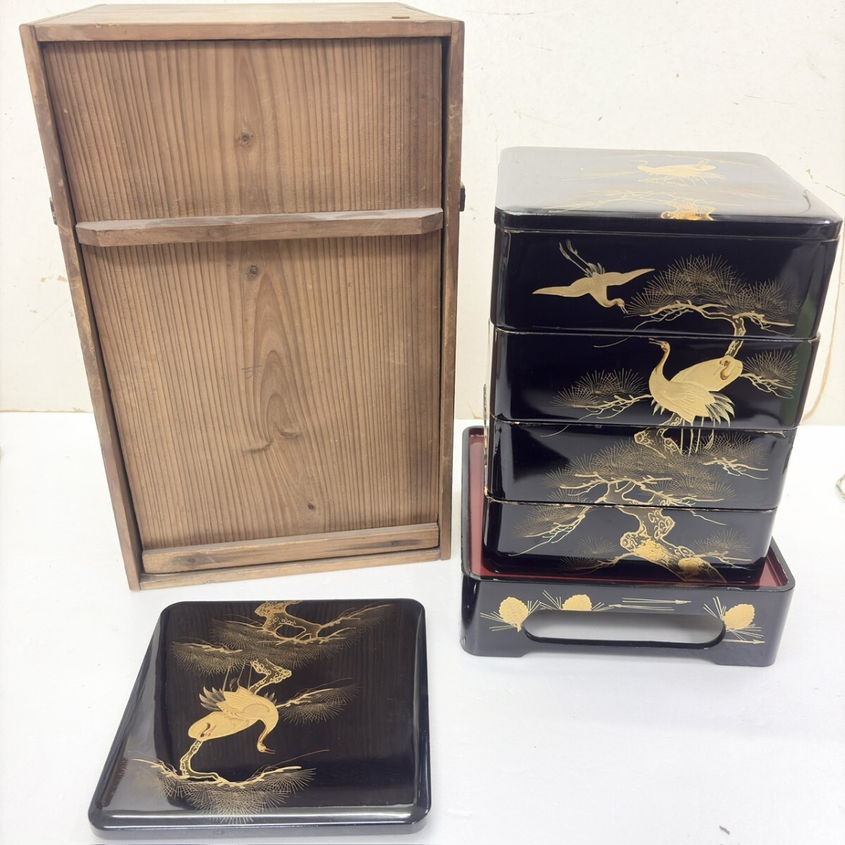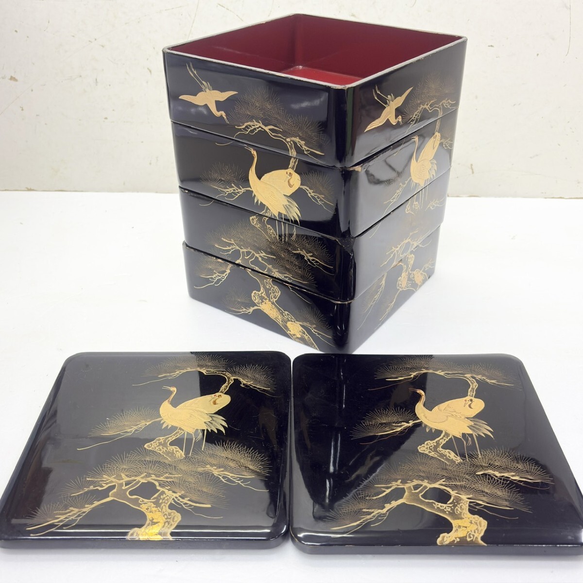 | 松鶴図蒔絵 重箱 四段重箱 漆器! ! | ||||