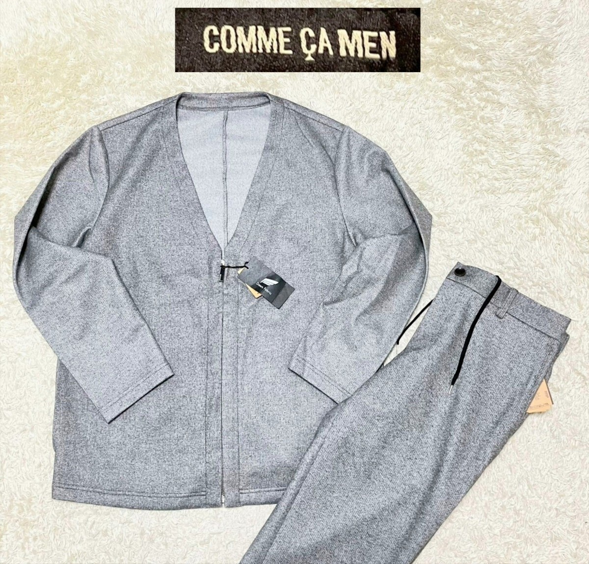 【未使用★中間層ダウン95%】sz:М コムサメン●ストレッチ ノーカラージャケット イージーパンツ セットアップ☆グレー (10)