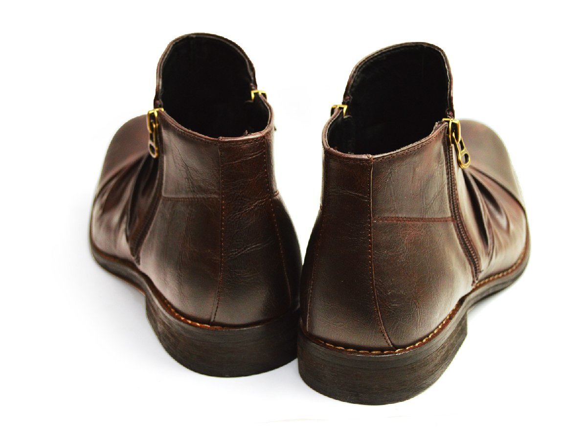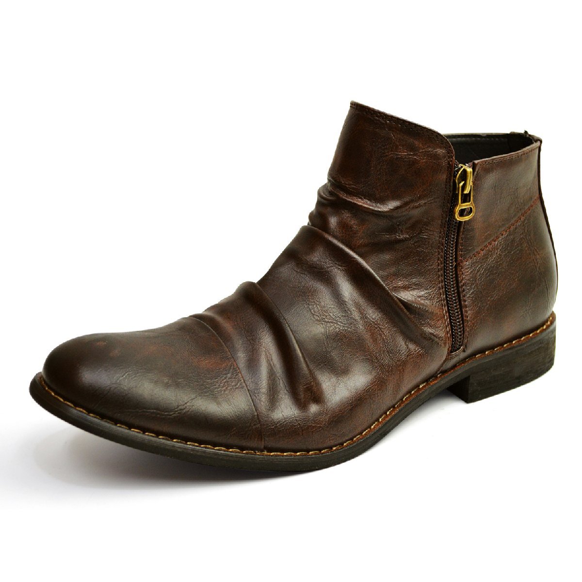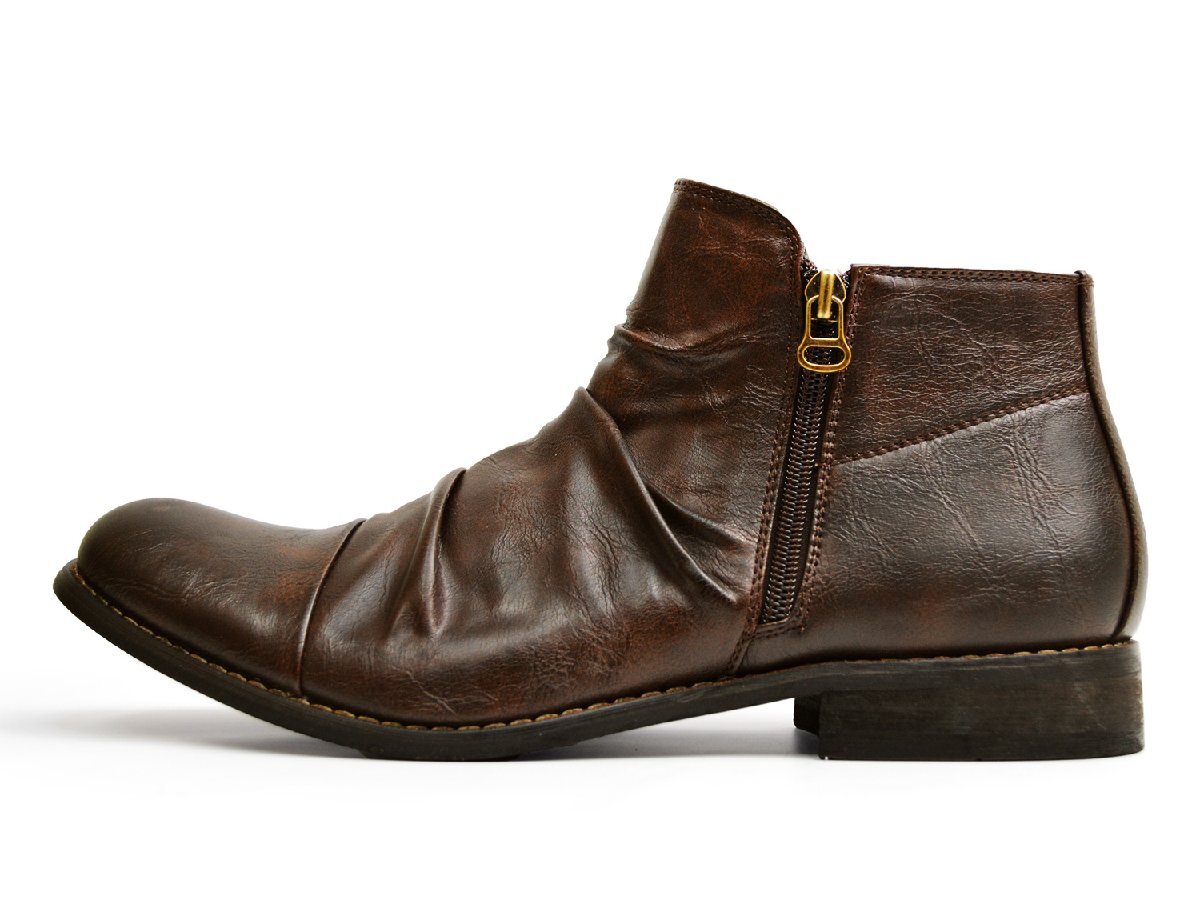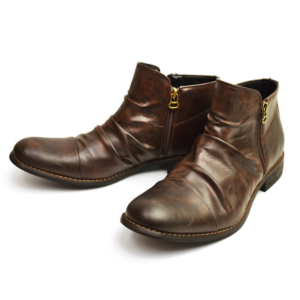 新品■ Wサイドジッパー ドレープブーツ Men's アンティーク ブーツ ショート丈 アンクル丈 メンズ キレイめ ビンテージ 男 靴 ze2789