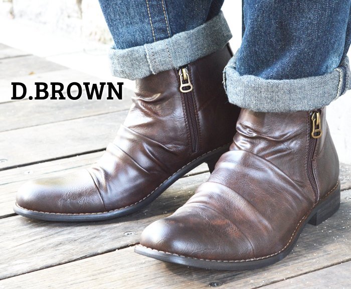 新品■28cm Wサイドジッパー ドレープブーツ チャッカブーツ アンティーク ブーツ ショートブーツ メンズ キレイめ ビンテージ 男 靴