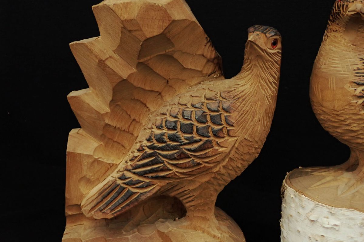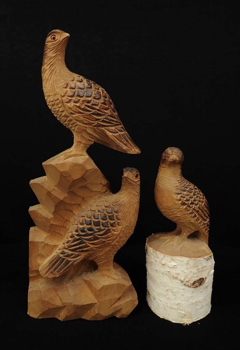 ▲一刀彫 雷鳥 2点(高さ約46cm※大きい方)▲木彫/置物/白樺/立山/民芸品/伝統工芸品/お土産/消費税0円