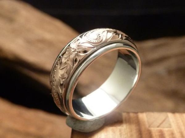 上記のサイズの中で在庫があるもを出品しています。 ◆デザイン紹介 本場ハワイから直輸入したハワイアンジュエリーのシルバーリングです。 リング一周にプルメリアと波がモチーフになった彫刻が綺麗にデザインされています。 幅が8mmとワイドでピンクゴールドのコーティングがとてもきれいなデザインです。ピンクゴールドの部分がクルクルと回転するギミック型のリングになります。 ギフトに大人気のデザインで、ペアリングとしてもオススメです。 ◆GIFTラッピング 300円 プレゼント用のラッピングをご希望の方は落札後ご連絡ください。1つのラッピングに入れられる商品は2組までです。 ◆ネーム彫り 1個 500円 リング、ペンダントへのネーム彫りをご希望の方は落札後ご連絡ください。 1文字づつ手彫りで彫刻しますので書体の指定はできません。 大文字、小文字、数字の組み合わせは可能ですがアイテムにより入れられる文字数が変わってきます。 コメント欄にご希望の文字列を明記ください。 例: k to t 21.2.25 (11文字) なおデザイン上彫刻が不可能の場合もありますのであらかじめご了承下さい。 また、ネーム彫刻をしたリングはいかなる場合も返品交換いたしません。ご納得の上ご依頼ください。 | |||||||||||||||||||||||||||||||||||||||||||||