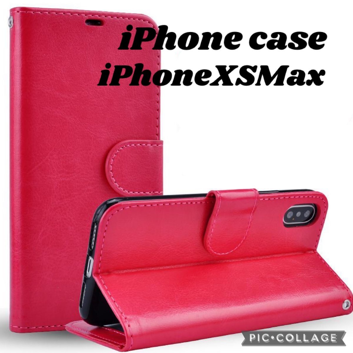 【iPhoneXSMax:ローズピンク】iPhone ケース 手帳型 液晶強化ガラスフィルム 2点 セット 保護フィルム 手帳 カード スマホケース A58