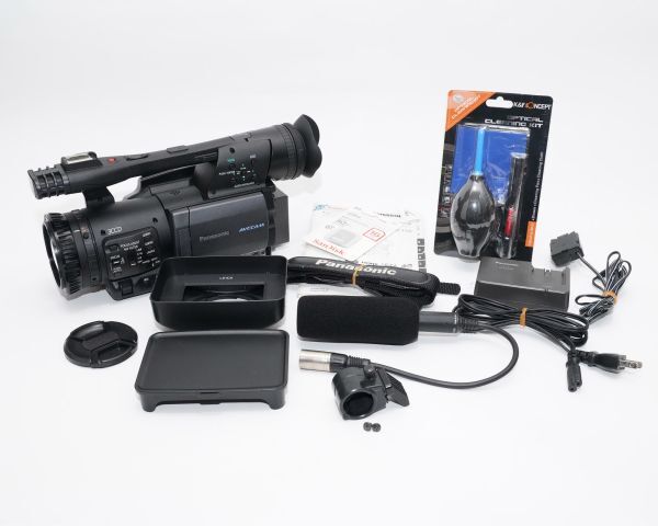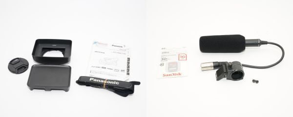 付属品は純正充電器VW-AD20、純正バッテリーVBG6(約4時間以上撮影可能です。弊社でテスト済み、AC用ケーブル、DCケーブル、純正レンズフード、純正レンズキャップ、社外品72mmレンズキャップ、サンディスクの新品16GBのSDカード、パナソニックのガンマイクAG-MC100、マイクホルダー(マイク固定スポンジは新品に交換済み)、説明書(痛みあり)、K&Fのクリーニングキット(新品)になります。説明書などは付属しません。
