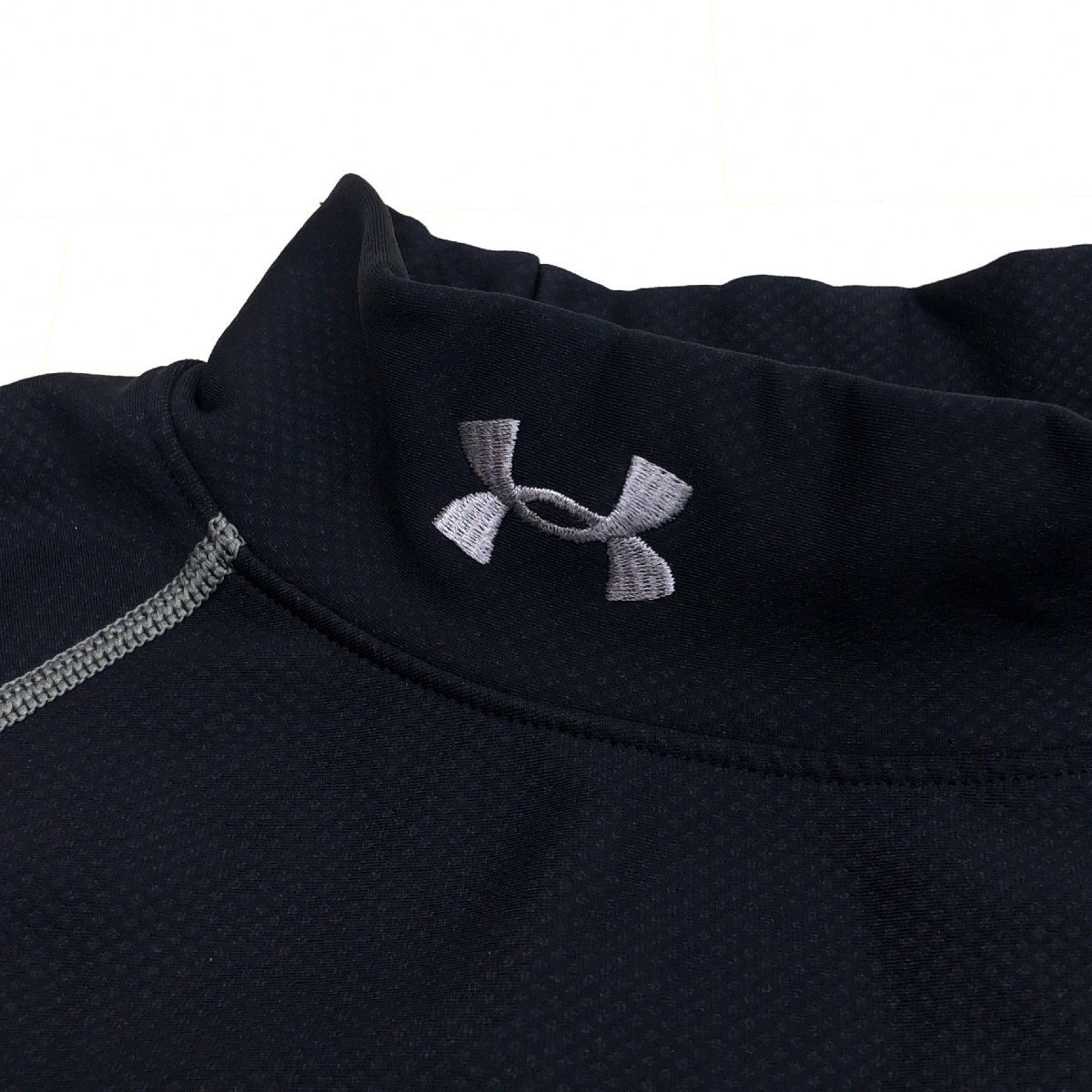 UNDER ARMOUR アンダーアーマー METAL 裏起毛 ストレッチ モックネック コンプレッション シャツ L 黒 長袖 アンダーシャツ メンズ 紳士