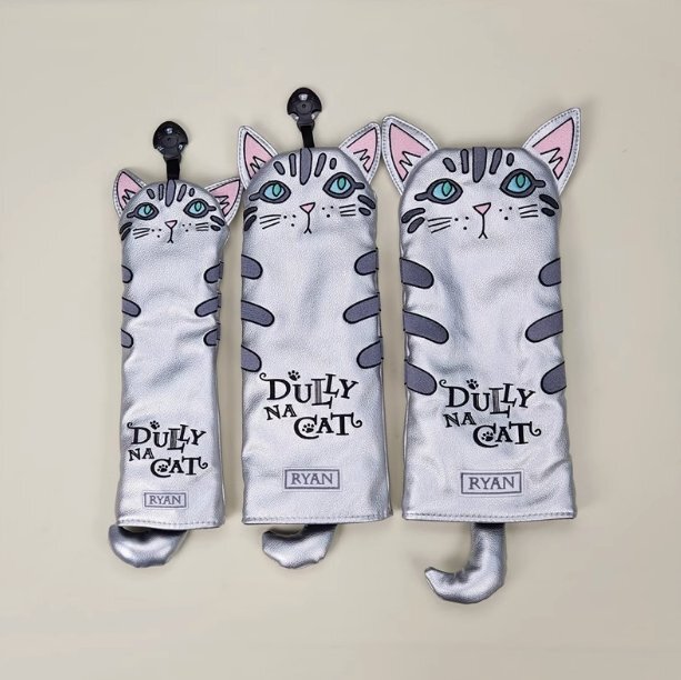 3点セット ゴルフ ヘッドカバー 3.5共通FW DW UT 猫 ねこ  パター ドライバー  gf252