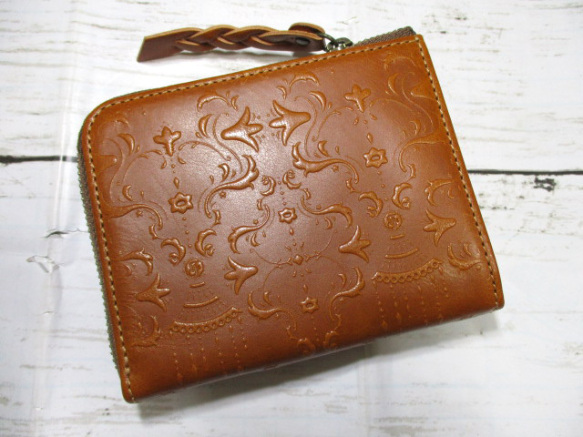 某ショッピングサイトでいつも上位に表示される大人気の愛らしいフェミニンブランド、フェランドのしっかりした牛革に植物や花柄を型押した落ち着いたデザインの飽きのこない財布。